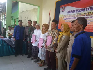 | Tiga Calon Kades Dukuh Malang Kecamatan Talang ditetapkan dalam Rapat Pleno Penetapan di balaidesa setempat/foto: istimewa |