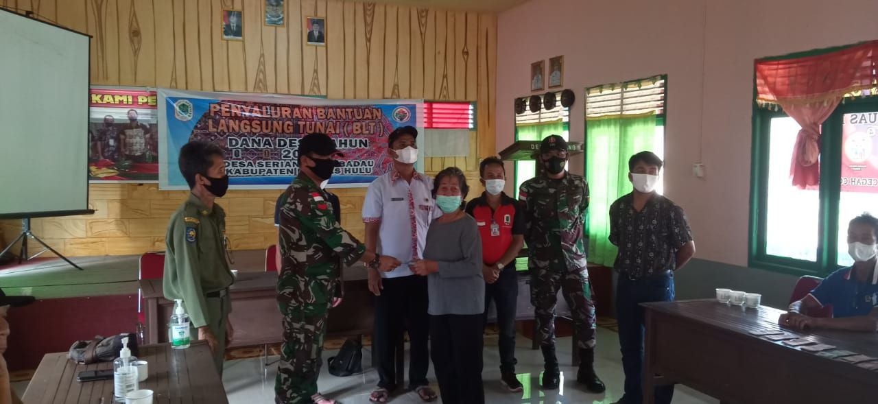 BADAU (ranahpesisir.com)- Koptu Suldakto selaku Babinsa di Desa Seriang melaksanakan pendampingan sekaligus pengamanan penyerahan Bantuan Langsung Tunai Dana Desa ( BLTDD ) di Kantor Desa Seriang, Kecamatan Badau. Sabtu (05/06/2021).