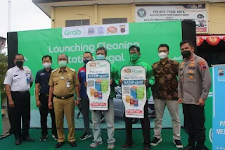 TEGAL (ranahpesisir.com)- Di tengah pandemi Covid-19 yang masih mengancam kehidupan kita khususnya warga Kota Tegal, Grab sebagai perusahaan jasa tranportasi online menyediakan layanan khusus yang menjamin kenyamanan dan keamanan sesuai protokol kesehatan bagi warga saat bepergian, dengan nama Grab Protect And Cleaning Station yang di Lounching di Halaman Mapolres Tegal Kota, Senin (13/9/2021).