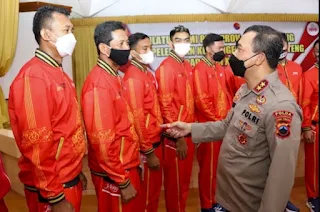 Hadir bersama sejumlah pejabat utama Polda Jateng, Kapolda melepas 23 atlet voli indoor dan 4 atlet voli pasir beserta 8 official.